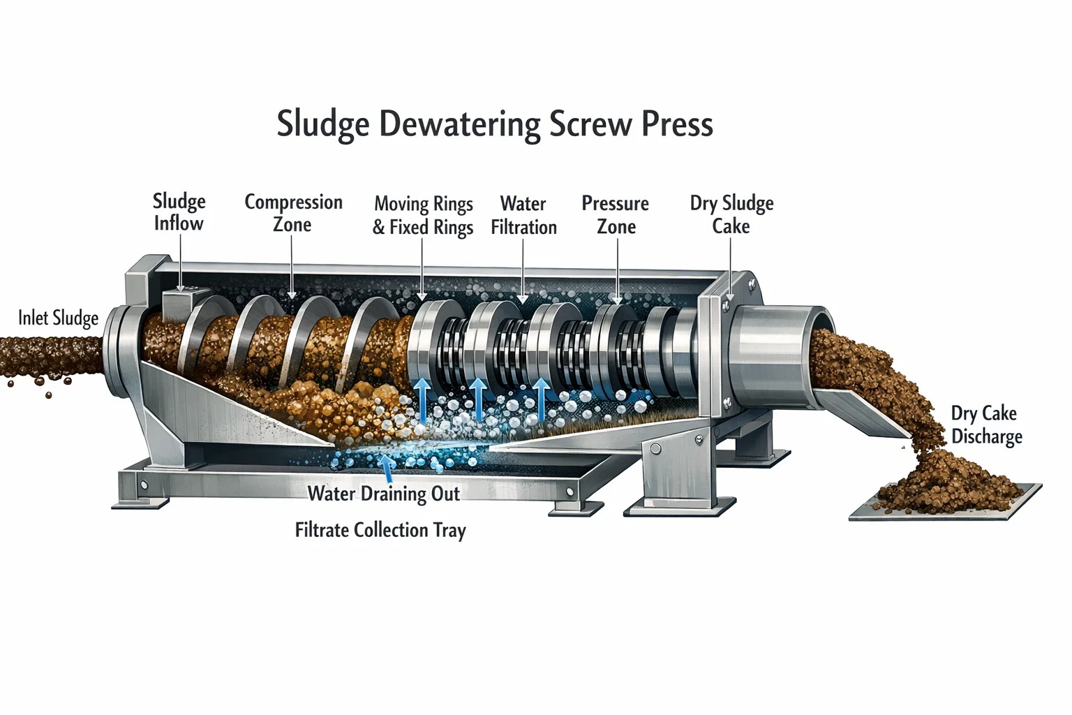 - Sparingen: MBR produserer betydelig mindre biologisk slam. Når det kombineres med en Slamavvanningsskruepresse , er det endelige volumet av avfall som sendes til deponiet minimert, noe som reduserer deponeringskostnadene med opptil 30-50 %.